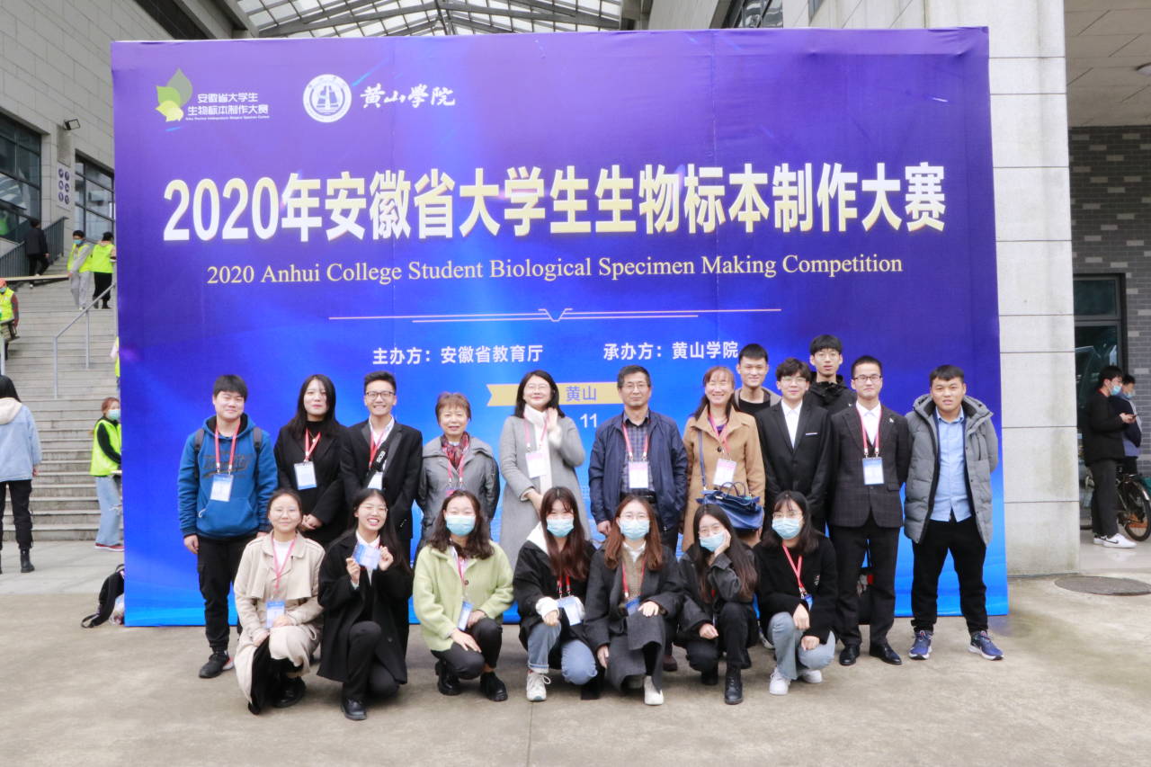 由安徽省教育厅主办,黄山学院承办的2020年安徽省大学生生物标本制作大赛(B类)决赛于11月20日至22日在黄山学院率水校区顺利举行,本次比赛共有来自全省38所高校的800余名师生参加比赛,参赛作品250余件,其中植物标本组90件、动物标本组58件,创新创意标本组102件。比赛分为标本展示和汇报答辩两个环节进行,评审专家分别从命名规范性、立意新颖性、方法科学性、设计创新性、作品美观性、技术难度系数以及PPT制作与答辩表现等几个方面对参赛作品进行考察和评审。最终经专家投票评选出本次比赛的一、二、三等奖、优秀指导老师奖以及优秀组织奖。