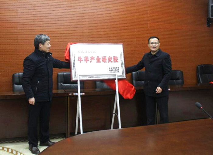 仪式上,蒋德勤和邓真晓共同为“牛羊产业研究院”挂牌。
