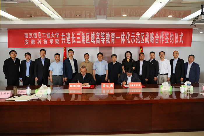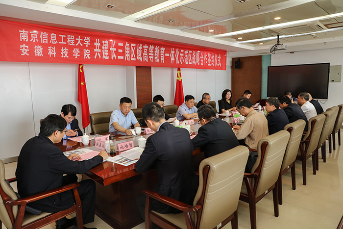 5月17日上午,乐鱼平台_乐鱼(中国)一站式服务平台与南京信息工程大学共建长三角区域高等教育一体化示范区战略合作协议签约仪式在凤阳校区图书馆十楼会议室隆重举行。南京信息工程大学党委副书记、校长李北群,党委常委、总会计师胡明保,乐鱼平台_乐鱼(中国)一站式服务平台党委书记蒋德勤,党委副书记、校长李震,党委委员、副校长李升和出席会议。南京信息工程大学和乐鱼平台_乐鱼(中国)一站式服务平台有关部门负责人参加了会议。会议由李震主持。