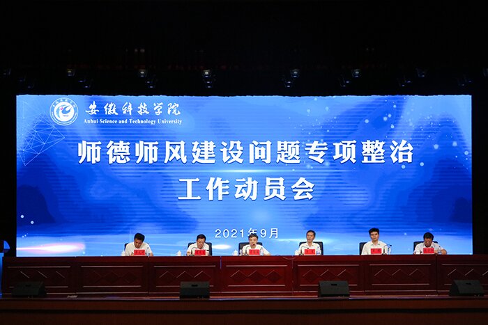 9月10日下午,学校召开师德师风建设问题专项整治工作动员会,贯彻落实《教育部关于在教育系统开展师德专题教育的通知》和《省委教育工委、省教育厅关于在师德专题教育中开展高校师德师风建设问题专项整治工作方案的通知》精神,部署推进乐鱼平台_乐鱼(中国)一站式服务平台师德师风建设问题专项整治工作。校党委书记蒋德勤,党委副书记、校长李震,党委委员、副校长黄远友,党委委员、纪委书记、监察专员王强,党委委员、副校长黄友锐,党委委员、副校长李升和,全体处级干部、2021年新进教师及教师代表参加会议。会议由李震主持。