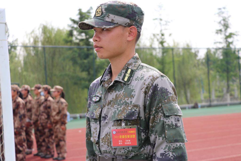“十七连都有,坐!喝水一个一个去,上厕所排成一列纵队,速去速回!”进入操场,耳边便传来一阵铿锵有力的说话声。一眼望去,看到的也只不过是一个跟笔者年纪相仿的年轻教官——冯驰。作为一名退伍军人,经过严格的选拔考核,他竞选成为一名新生教官,在身着军装,站军姿、齐步走、正步走等一系列动作中,我们不难看出冯驰属于军人的飒爽英姿。训练时,冯驰严厉而不失温和,教给新生们动作要领时,他还会细心地为学弟们整理仪容仪表,同学们训练疲乏时,会给同学们讲述自己的部队生活:第一次摸到真枪时的兴奋,第一次感受呼出的空气都能结成冰的超寒天气,第一次任务失败被换掉的挫败感等等。身为教官,他并没有跟新生们保持距离感,反而与学生们融为一体,为新生们艰苦乏味的军训生活添上了一抹温情。