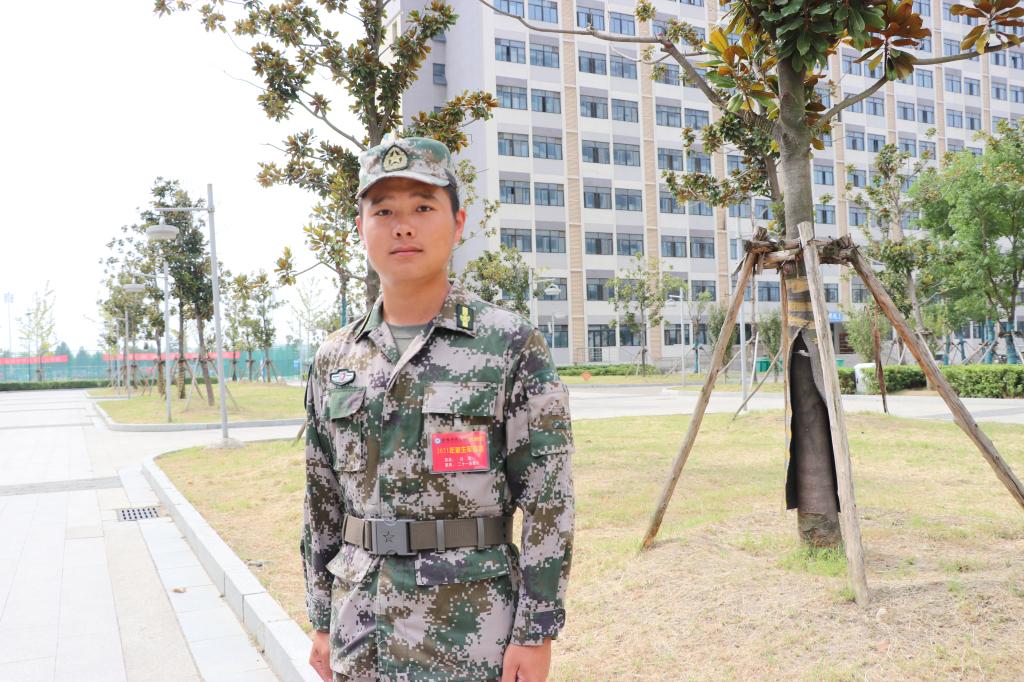 “炫酷的迷彩服,挺拔的身姿,军营中的飒爽风姿,都是我心之所向。”魏博认为青春是最好的年华,他要在最好的年华做最向往的事,于是他在家人的支持下报名参军。今年,魏博志愿报名2021级新生军训指挥教官。他在军训中用自己在部队学到的技能协助训练,不仅帮助同学规范动作,而且通过自身修养和实际行动,将爱国的理想信念和军人的品质传递给同学们。他像位大家长一样,和同学们演练在部队中学到的训练技巧,分享自己的经历。训练时严肃地带队军训,休息时和同学们亲切交流,没有一丝距离感,“我看见同学们在训练时就像看见了自己以前的身影。”魏博如是说。