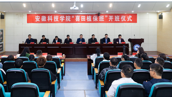 10月13日上午,农学院在会议中心第一报告厅举行“喜田植保班”开班式。校党委副书记、院长李震应邀出席并发表讲话。校党委学工部部长、学生处处长何永勇,校教务处副处长、创新创业学院副院长高青海;安徽喜田生物科技有限公司总经理郭晓刚,副总经理袁国政,销售总监、乐鱼平台_乐鱼(中国)一站式服务平台优秀校友、“喜田植保班”校外班主任韩松;《安徽化工信息》《长三角农资》总编辑徐梦云、《三农前线》副编辑潘旭东等出席。农学院党政领导、教师代表、辅导员代表、“喜田植保班”校内班主任、专业班主任和全体学生参加。开班式由农学院党委副书记、院长崔广荣主持。