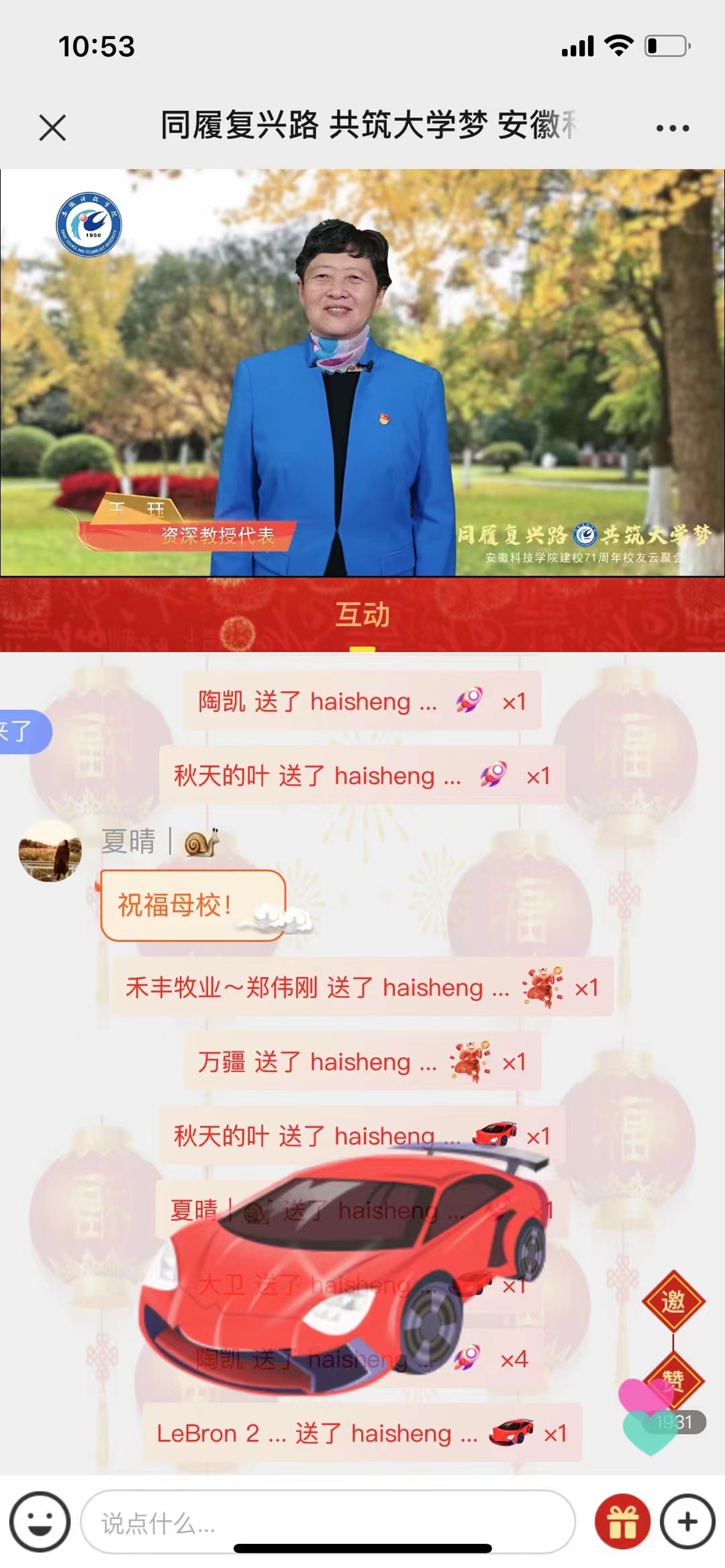 11月7日上午,学校举行建校71周年校友云聚会。近1.5万各届校友云端相聚,共襄盛典,与昔年老师畅叙师生情谊,和旧日同窗共话别后起伏,向后学晚进传授人生感悟。