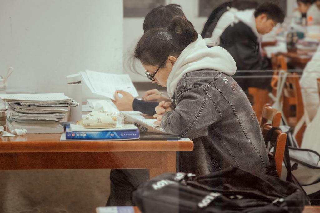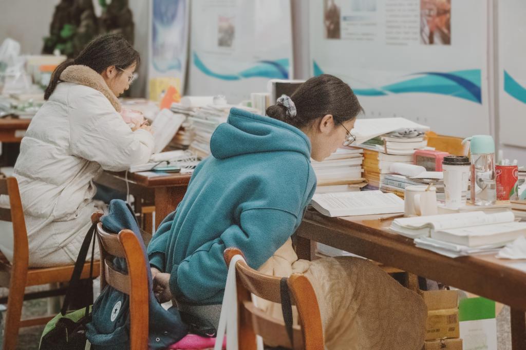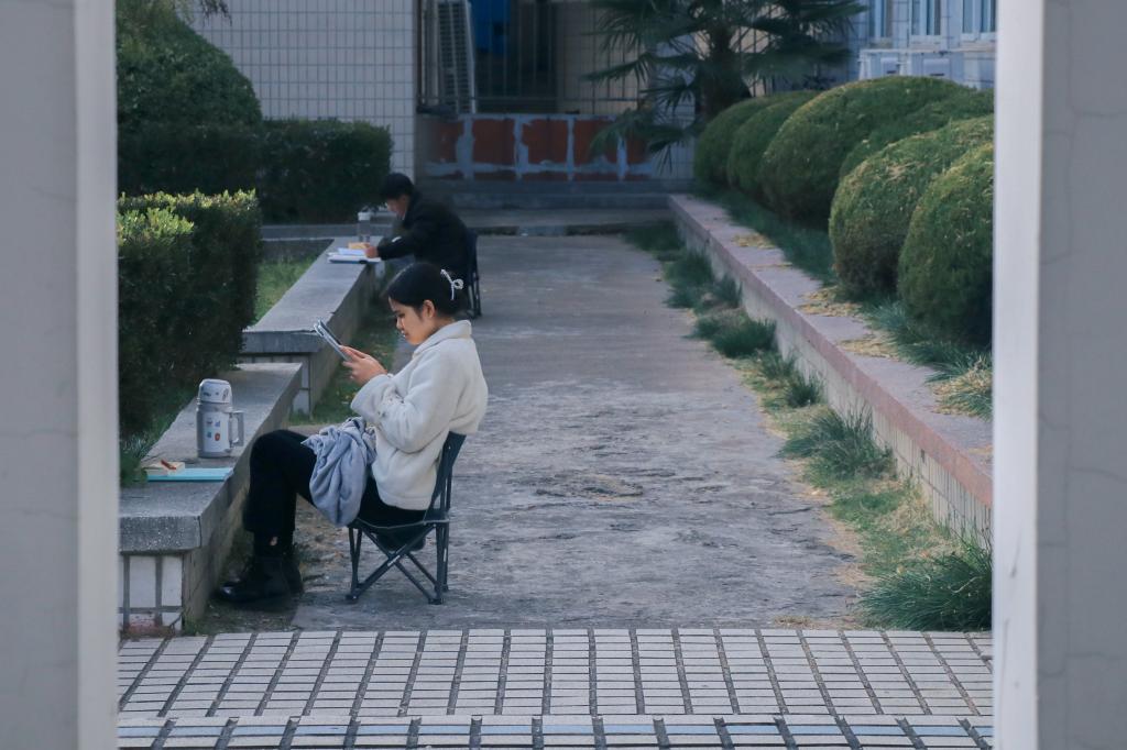 落叶纷飞,修竹在后。那一个个埋头深入学海的考研学子,听不见行人的脚步声和鸟儿的嘻笑声,只听见内心斗志昂扬的呐喊声!
