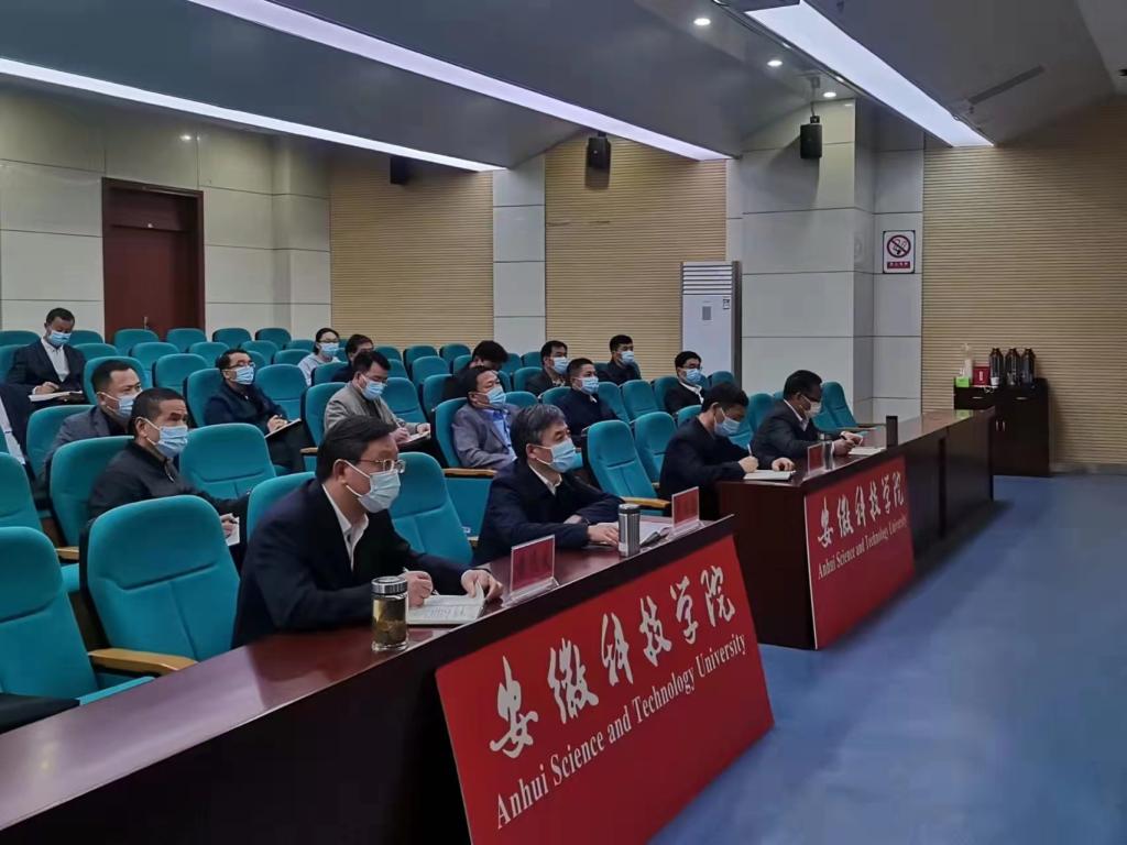 4月14日下午,乐鱼平台_乐鱼(中国)一站式服务平台在凤阳校区会议中心一楼报告厅设立分会场,参加由省教育厅召开的教育系统(九地市片区)疫情防控视频会议。校党委书记蒋德勤,党委副书记、院长李震,党委委员、副院长黄远友出席会议。