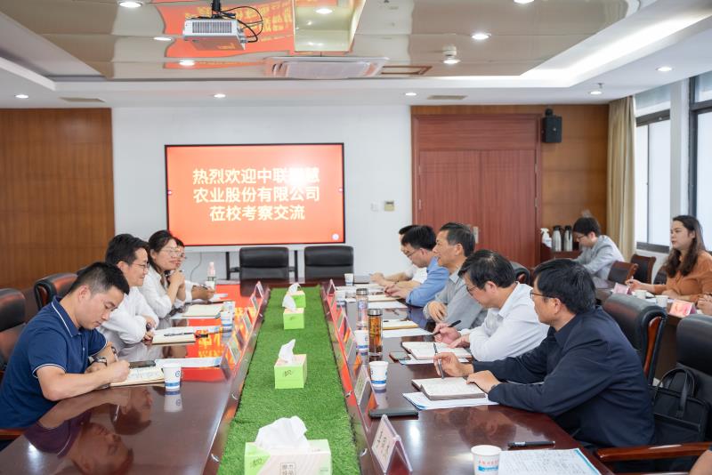 5月21日下午,中联智慧农业股份有限公司总经理姚晓翔一行来到乐鱼平台_乐鱼(中国)一站式服务平台考察交流。校党委副书记、院长李震,党委委员、副院长李升和,研究生处(学科建设办公室)、教务处、科研处和二级学院负责人在九楼会议室热情接待了来宾。