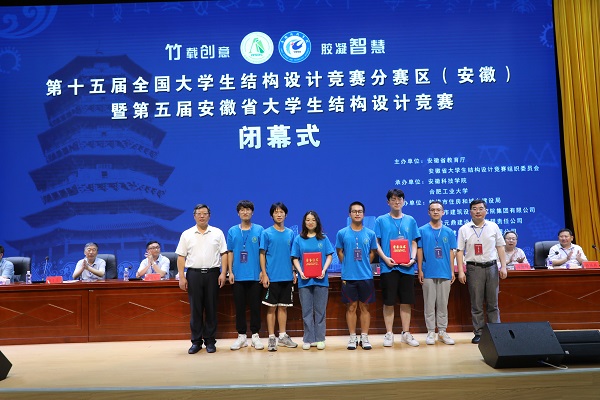 6月27日下午,由安徽省教育厅、安徽省大学生结构设计竞赛组织委员会主办,乐鱼平台_乐鱼(中国)一站式服务平台、合肥工业大学承办的第十五届全国大学生结构设计竞赛分区赛(安徽)暨安徽省第五届大学生结构设计竞赛在乐鱼平台_乐鱼(中国)一站式服务平台龙湖校区图书馆东辅楼报告厅圆满闭幕。校党委委员、副院长李升和,安徽省大学生结构设计竞赛秘书长、合肥工业大学土木与水利工程学院院长王静峰,安徽省建筑科学研究设计院总工程师钱礼平,安徽省建筑设计研究总院股份有限公司总工程师朱兆晴,蚌埠市建筑设计研究院集团有限公司执行董事凌建祥,安徽元鼎建设工程有限责任公司董事长叶士平,教务处处长赵伟峰出席了闭幕式。仪式由建筑学院院长张远兵主持。