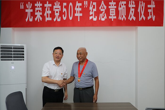 7月1日上午,在喜迎中国共产党建党101周年之际,离退休党总支举行庄重简朴的“光荣在党50年”纪念章颁发仪式,党委委员、副院长黄远友,党委委员、组织部长钱锐等出席会议,颁发仪式由离退休党总支书记时乾主持,离退休党总支委员、在职党员等参加颁发仪式。