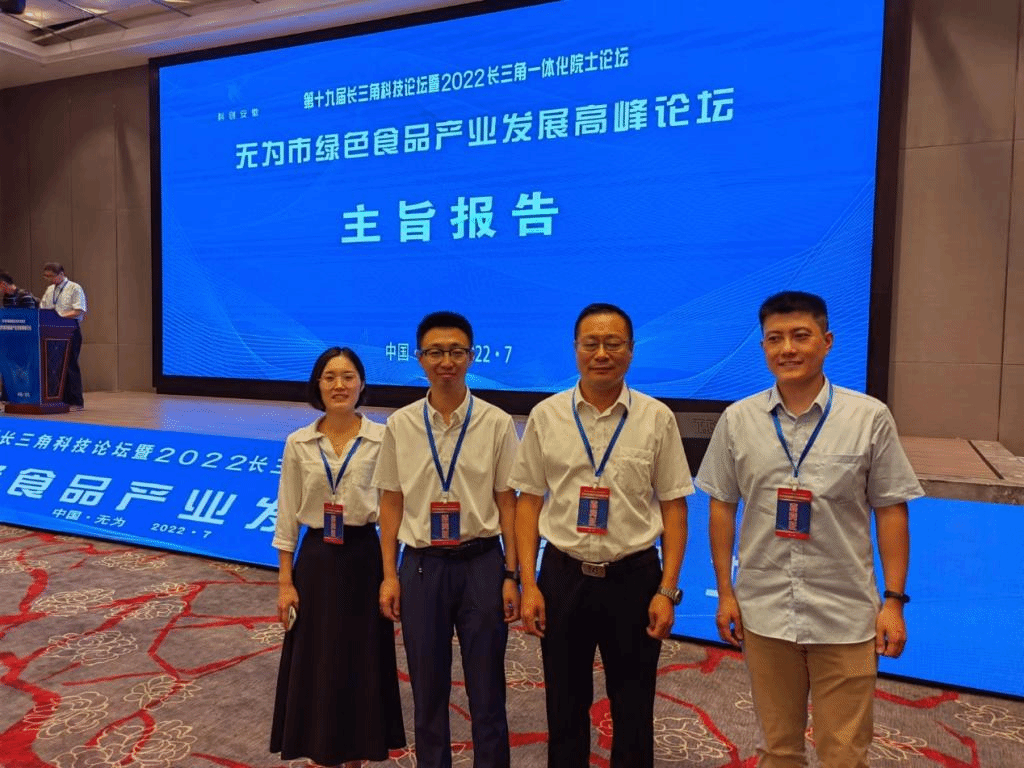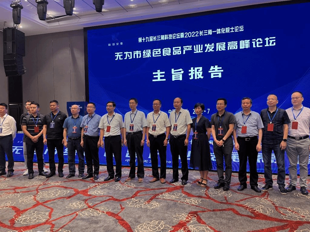 7月5日,第十九届长三角科技论坛暨2022长三角一体化院士论坛—无为市绿色食品产业发展高峰论坛在无为市成功举办。中国食品科学技术学会、安徽省科学技术协会、安徽省食品科学技术学会及合肥工业大学、安徽省农科院等科研院所以及三只松鼠、紫约生物科技股份有限公司等企业线下、线上的300余位专家、学者和代表参加会议。芜湖市政协副主席、无为市委书记吴瑞新、安徽省科协副主席魏军锋、芜湖市副市长朱的娥等领导先后致辞,无为市政府市长匡健主持论坛开幕式。中国工程院院士谢明勇教授作题为《植物基乳酸菌发酵食品研究与开发》的主旨报告,教育部食品科学与工程类专业教学指导委员会主任委员金征宇教授作题为《后疫情时代休闲食品产业的机遇与挑战》的主旨报告。食品工程学院院长杜传来、副院长翟立公、甄宗圆博士和杨丽萍博士应邀参会。