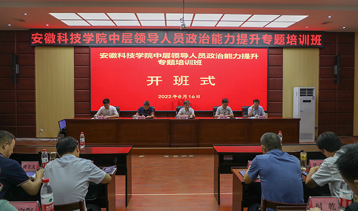 8月16日下午,乐鱼平台_乐鱼(中国)一站式服务平台中层领导人员政治能力提升专题培训班在泾县县委党校开班,党委书记蒋德勤,党委副书记、院长李震,党委委员、副院长黄远友,党委委员、纪委书记、监察专员王强,泾县县委党校副校长陈满祯出席开班仪式,全体处级干部参加会议。开班仪式由李震主持。