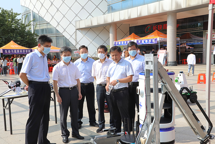 迎新现场,机械工程学院为2022级新同学展示了一场盛大的“科技秀”,由学生团队自主研发的“智能爬行机器人”“智能感知机器人”“智能识别机器人”“智能送餐机器人”,引来新生围观。让新生在入学就能体会到科技的魅力、艺术的美感。农学院自主研发组装的农业喷洒无人机,让新同学进一步加深了对智慧农业和智能农业装备的认识,让他们更加明确了大学四年的学习目标。食品工程学院为2022级新生准备了自制的各式美食和精美盲盒,生命与健康科学学院为新生设置了专属打卡点,为新同学留下了大学第一张精美照片......让新同学感受到了学院专有的宠爱。校领导在慰问时指出,各学院迎新十八般“武艺”齐上阵,以“心”迎新,真正做到让新生感到宾至如归。各学院要坚持“以人为本,学生第一”的工作理念,在各方面为新生提供最优质的服务,让新生能够更快更好的融入到“安科大家庭”,保证迎新不仅仅是迎新,更在于“迎心”。
