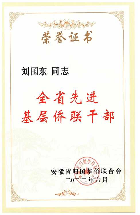 同时,为表扬先进,进一步激发全省侨联系统干事创业的热情,安徽省侨联启动开展了全省侨联系统先进个人评选活动。乐鱼平台_乐鱼(中国)一站式服务平台侨联主席刘国东荣获“全省先进基层侨联干部”称号。