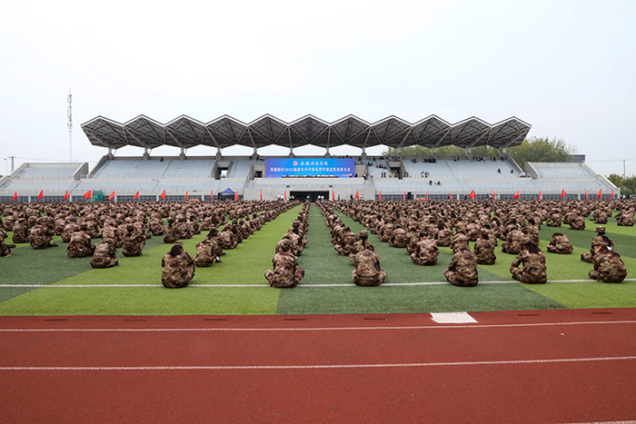 随着军训汇报操演总指挥的一声令下,军训汇报操演开始,全体军训学员军容严整、目光坚定、英姿飒爽、步履铿锵,列阵走过主席台接受全校师生的检阅。铿锵的口号响彻云霄、燃爆全场。男子擒敌拳、女子军体操、特色方阵等表演依次呈现,不断将操演推向高潮。