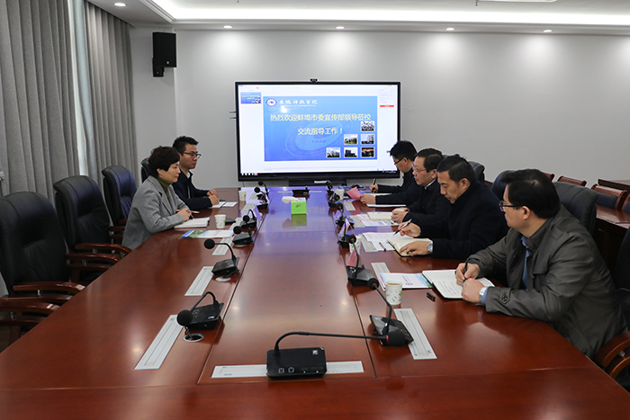 11月17日上午,蚌埠市委宣传部副部长、市文联党组书记蒋敏娣,对外宣传和媒体融合发展科科长李斌到乐鱼平台_乐鱼(中国)一站式服务平台龙湖校区沟通对接校部战略合作相关工作。校党委委员、副院长黄远友主持交流会,党委委员、党委宣传(统战)部部长何永勇,党委宣传(统战)部副部长姚文均,人文学院副院长牛永辉参加座谈交流。