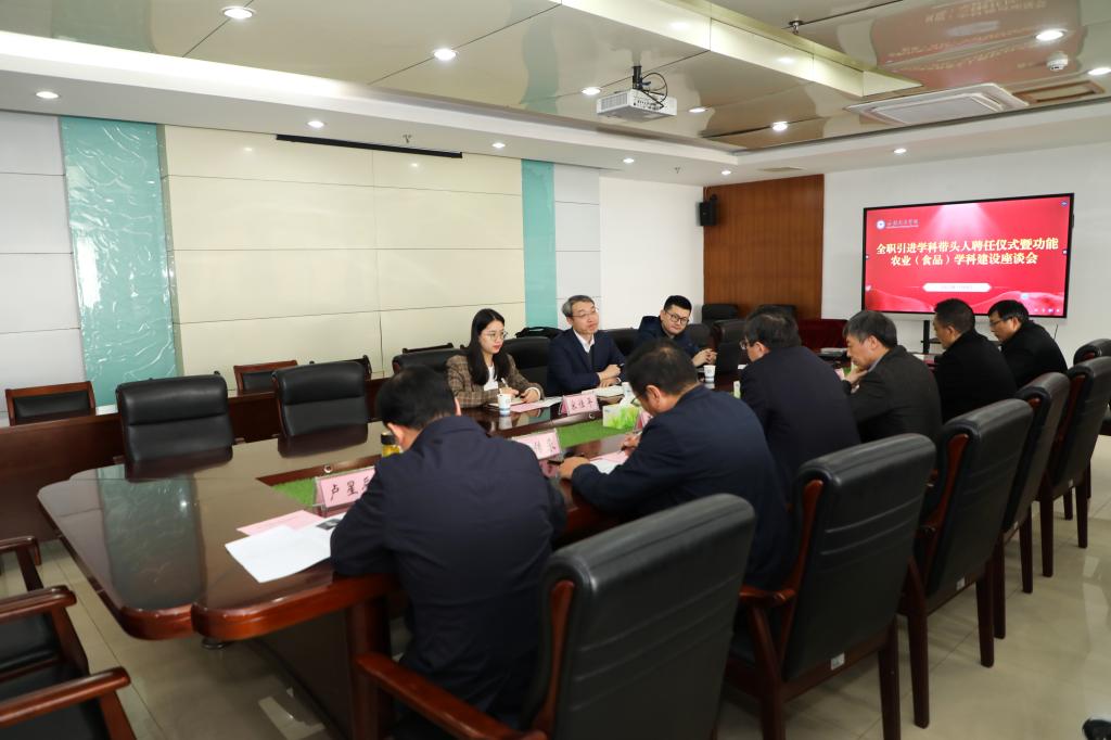 为整合优化农科资源,做优做强传统优势学科,开展新农科建设,更好对接支撑绿色食品等地方战略性新兴产业发展,在前期广泛深入洽谈基础上,近日,学校举行全职引进学科带头人尹雪斌博士的聘任仪式,并就功能农业(食品)学科建设进行座谈研讨。校党委书记蒋德勤,党委委员、副院长黄远友出席聘任仪式及座谈会,人事处、科研处、研究生处及动科、农学、生科、食品、资环等涉农学院负责人、尹雪斌团队其他成员参加了聘任仪式及座谈会。