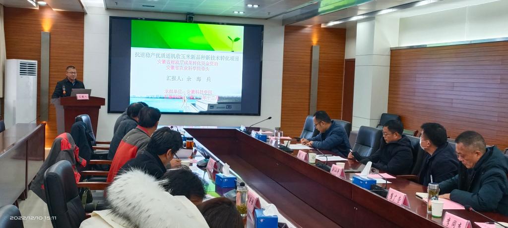 12月10日,由安徽省农业科学院牵头,乐鱼平台_乐鱼(中国)一站式服务平台承担的“抗逆稳产优质适机收玉米新品种新技术转化项目”历经一年,在安徽省农业科学院创新大楼二楼会议室进行结题汇报。省财政厅农业农村处主任科员梁晓天,安徽省农业科学院科研处处长李成、计财处处长刘小平,乐鱼平台_乐鱼(中国)一站式服务平台农学院院长崔广荣、科研处副处长李同杰,部分项目组成员出席会议。项目验收专家组由安徽省农业科学院研究员陈洪俭、安徽省农技推广总站副站长康子领、安徽省种子管理站研究员刘玉恒、合肥丰乐种业股份有限公司正高级农艺师张二朋、众华会计师事务所商宜洲等成员组成。会议伊始李成致辞,专家组观看了课题组精心准备的视频,余海兵教授代表项目组从课题研究背景、研究目标、研究内容、研究方法、研究成果等方面做了全面细致的汇报。