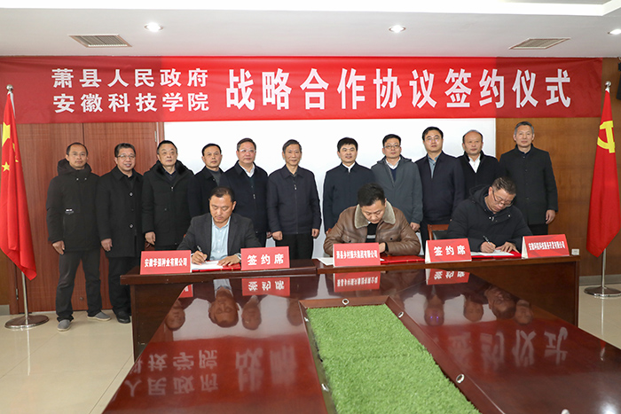 黄远友与胡先锋代表校地双方签订《萧县人民政府乐鱼平台_乐鱼(中国)一站式服务平台战略合作协议》。张敬强、田涛与穆克利分别代表安徽科院科技服务开发有限公司、萧县乡村振兴集团有限公司和安徽华强种业有限公司签订《安徽科华辣椒产业技术研究院共建协议》。