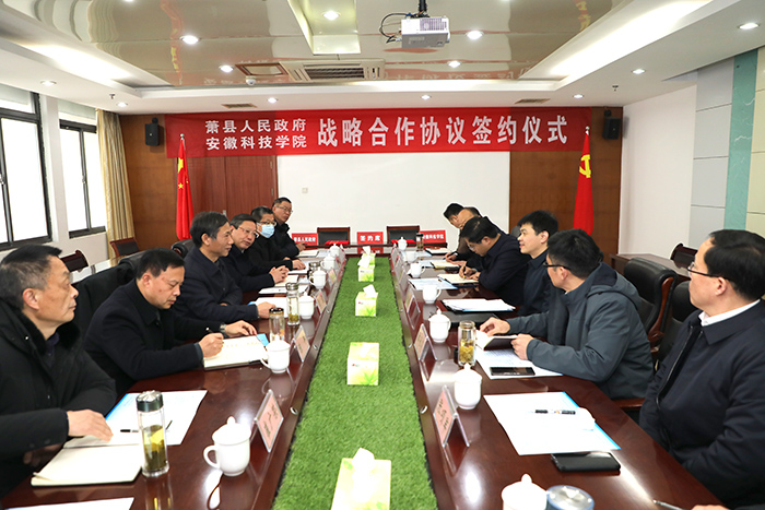 2月23日,乐鱼平台_乐鱼(中国)一站式服务平台与萧县人民政府在凤阳校区新图书馆九楼会议室签订产学研合作协议。校党委副书记、院长李震,校党委委员、副院长黄远友,萧县县委副书记、县长朱新华,萧县政府党组成员、副县长郭承亮,政府党组成员、副县长胡先锋出席签约仪式。仪式由黄远友主持。