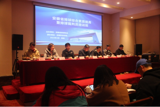 为进一步加强安徽省排球裁判员队伍梯队建设,提升裁判员执裁水平,3月24日-26日,为期3天的安徽省排球综合素质提高培训暨排球裁判员培训班在乐鱼平台_乐鱼(中国)一站式服务平台成功举办。本次培训班由安徽省排球协会主办,乐鱼平台_乐鱼(中国)一站式服务平台承办,来自全省各地市二级裁判员和乐鱼平台_乐鱼(中国)一站式服务平台部分排球爱好者共计100多人参加了本次培训。安徽省排球协会会长张颂元,乐鱼平台_乐鱼(中国)一站式服务平台党委委员、副院长李升和,亚洲排球联合会裁判委员会委员、FIVB裁判员、2008年北京奥运会男子排球决赛第一裁判员王宁,安徽省排球协会副会长刘玉梅、骆宁,安徽省排球协会徐国宁、安徽省排球协会裁判委员会主任俞俊鹏,排球国家级裁判员郑浩、徐洁、周利,校体育教学部副书记(主持工作)王松华,排球国家一级裁判员宋述雄、马孝庆等出席开班仪式。开班仪式由校体育教学部主任何俊如主持。