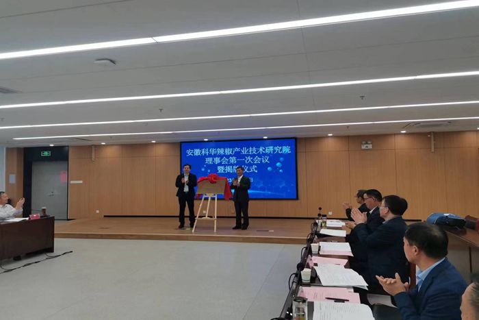 揭牌仪式上李震指出,安徽科华辣椒产业技术研究院的成立是学校发挥学科专业优势、立足地方产业需求和服务经济社会发展的一项重要举措,是为地方实施创新驱动、解决企业技术难题、推进科技成果转化的创新载体,是助力乡村振兴工作中的一次大胆探索和有益尝试。他期望,共建方依托萧县“中国辣椒制种第一县”的区位、品牌优势以及学校辣椒团队的种质资源、技术优势,通过强强联合、深度融合,以高端鲜食类辣椒、高色价和高辣度辣椒为育种目标,高起点攻关、推广新技术,做长、做强、做大辣椒产业,将研究院打造成校地、校企合作的样板。