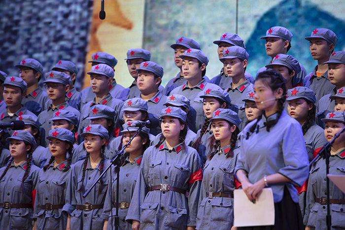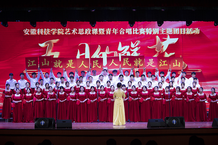 主题团日活动分为五个篇章,通过演绎具有代表性的合唱曲目学习党在各个历史时期创造的理论成果、积累的宝贵经验、铸就的伟大精神,将一件件具有重大意义的历史事件、一个个鲜活的历史人物搬上舞台。第一篇章《启航》用《国际歌》《八月桂花遍地开》《唱支山歌给党听》等歌曲展现了中国共产党成立这一开天辟地的大事变,诠释了理想信念的火炬一经点燃,就永远不会熄灭;第二篇章《风雨无阻》,向观众再现了历经28年欲血奋战,百折不挠,坚忍不拔的中国共产党人,带领中国人民淬火成钢,成立崭新的中华人民共和国;第三篇章《激流勇进》表现了中国共产党带领中国人民站起来、富起来,大踏步赶上时代,开启了改革开放和社会主义现代化的伟大征程,《春天的故事》《走进新时代》《江山》等经典旋律回荡在礼堂上空;《新的天地》《我们都是追梦人》等歌曲生动地诠释了第四篇章《锦绣前程》,党的十八大以来,中国特色社会主义进入新时代,以习近平同志为核心的党中央,统揽伟大斗争、伟大工程、伟大事业、伟大梦想,带领全国人民阔步迈上全面建设社会主义现代化国家新征程;最后一个篇章《踔厉奋发》,用《领航》《不忘初心》等曲目展现了新一代共产党人承前启后、继往开来,亿万中华儿女乘着党的二十大的东风,正在把一个民族复兴的伟大梦想写进未来。部分曲目师生同台献艺表演,增强了思政课的互动性与感染力。
