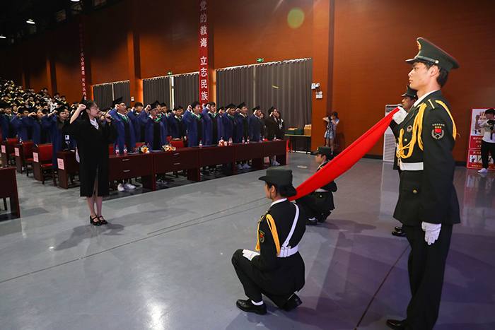 上午9时,毕业典礼暨学位授予仪式在庄严的国歌声中拉开帷幕。