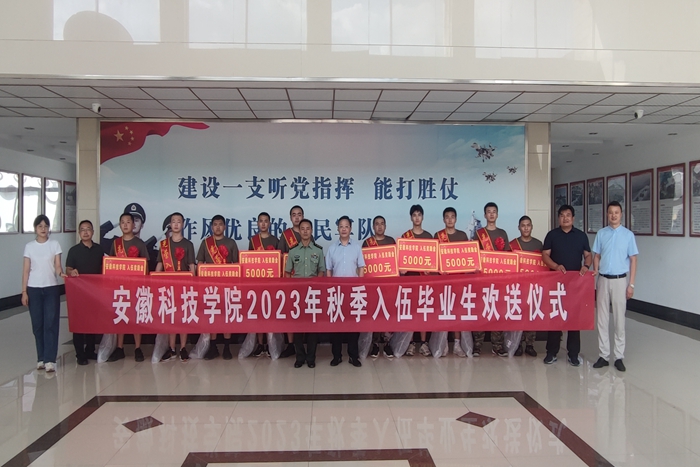 9月14日下午,乐鱼平台_乐鱼(中国)一站式服务平台2023年秋季应征入伍毕业生欢送仪式在蚌埠国防教育基地举行。校党委委员、副院长黄远友和蚌山区人民武装部部长曾鸣出席仪式并为应征入伍毕业生颁发入伍奖励金和赠送纪念品。学生处、人民武装部相关负责同志参加活动。仪式由党委学工部部长、学生处处长黄立义主持。