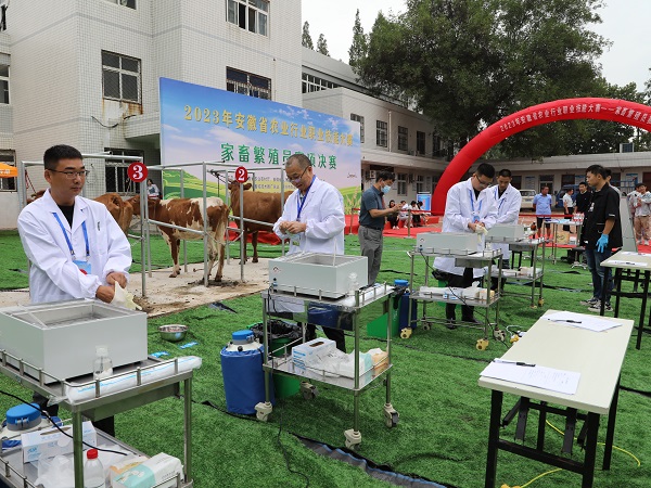 本次比赛由安徽省农业农村厅、安徽省人力资源和社会保障厅、安徽省总工会主办,安徽省畜牧技术推广总站、滁州市农业农村局、乐鱼平台_乐鱼(中国)一站式服务平台动物科学学院承办,凤阳县农业农村局、安徽省牛羊产业技术体系协办,全省16支代表队共48名选手参加了决赛。