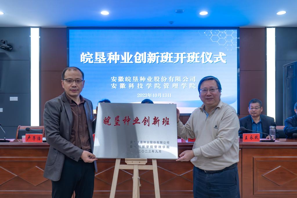 开班仪式上,管理学院院长陈传万代表学院发表了热情洋溢的致辞。丁景良宣读了关于成立“皖垦种业创新班”的决定,并与陈军共同为“皖垦种业创新班”揭牌。“皖垦种业创新班”学生代表王浩作表态发言。(特约通讯员:李永鹏 摄影:程圳 审核:丁景良 姚文均 编辑:李锦)