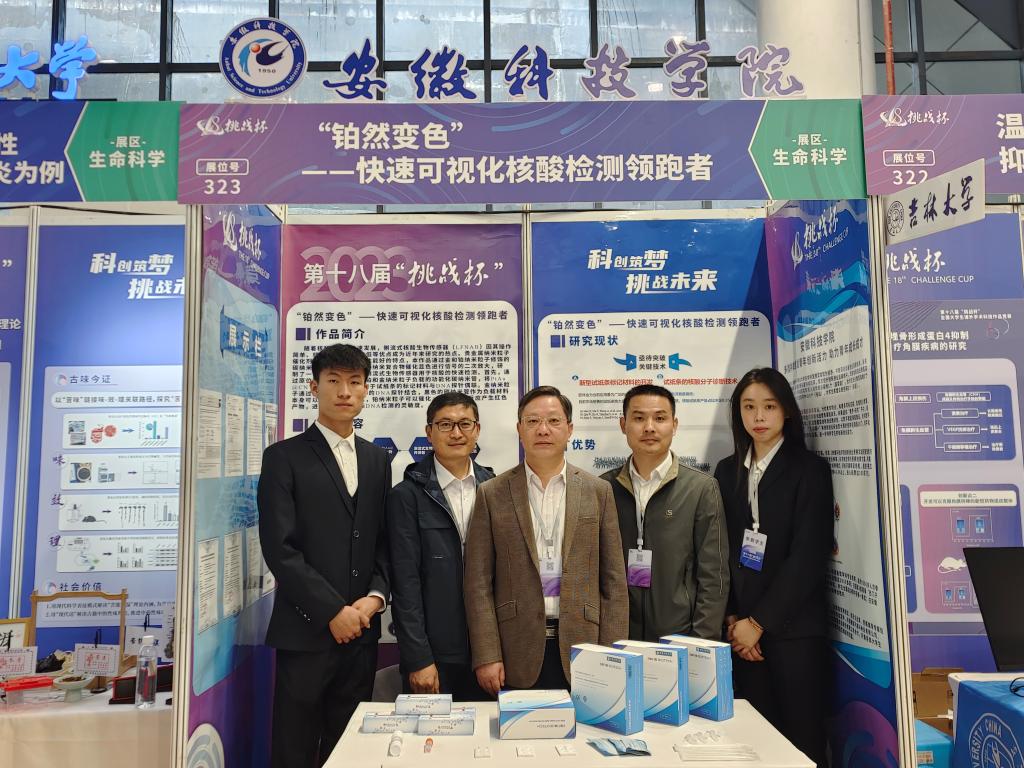 “铂然变色”项目历经校赛、省赛、全国初评和网评等环节,团队脱颖而出挺进终审决赛,在为期四天的比赛中,团队发挥专业优势、精心备赛,经过集中展示与公开答辩,最终斩获全国二等奖。该作品通过金和铂纳米粒子修饰的碳纳米管(PtAu@CNTs)纳米复合物催化显色进行信号的二次放大,研制了一种快速、超灵敏的侧流式生物传感器用于核酸的快速检测。比传统胶体金试纸灵敏度提高了250倍。PtAu@CNTs标记的超灵敏试纸条生物传感器在临床分子检测,食源性致病菌检测及环境检测等方面显示出良好的应用前景。