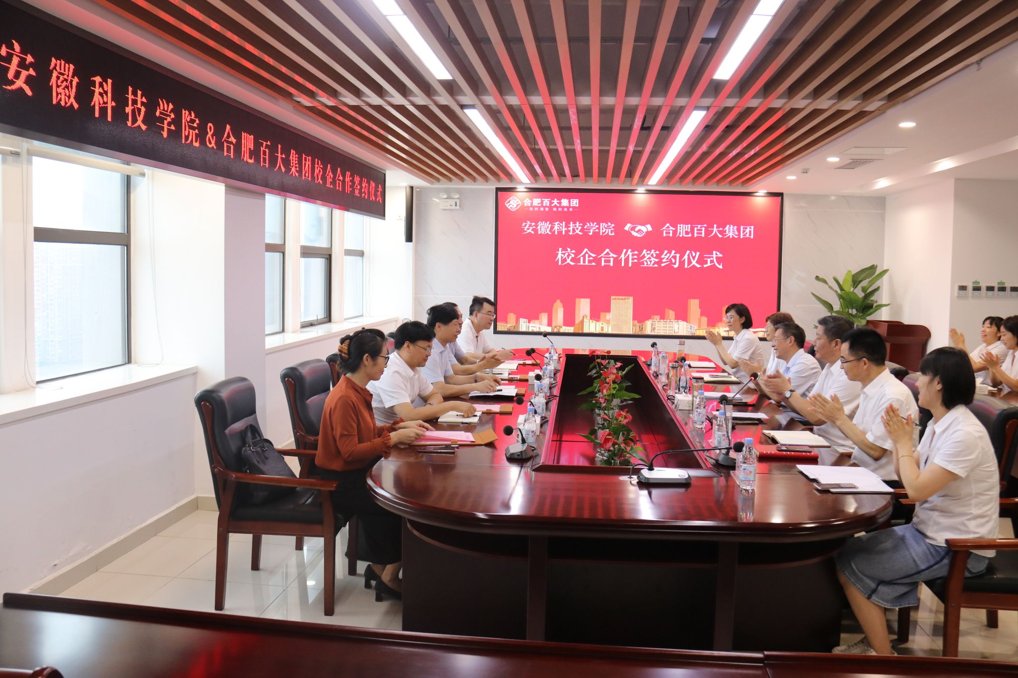 财经学院院长郝世绵和百大集团党委委员、工会主席裴文娟代表双方签署了《合肥百大集团 乐鱼平台_乐鱼(中国)一站式服务平台战略合作协议》;双方观看了合肥百大集团宣传片,并围绕智力共用、人才共育、项目共研、平台共享等进行深入交流。