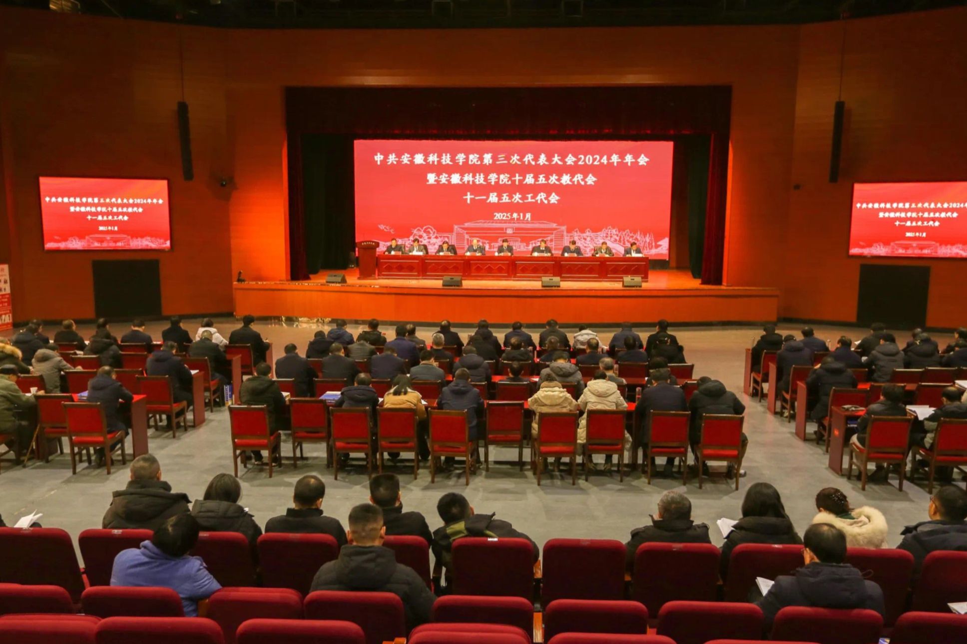 大会第一次全体会议由赵伟峰主持。大会表决通过了会议议程(草案)。李升和代表学校党委、行政作题为“聚力改革攻坚 提升内涵质量 努力开创一流应用型大学建设新局面”的《党政工作报告》。报告全面总结回顾2024年工作,报告指出,2024年学校坚持以习近平新时代中国特色社会主义思想为指导,深入学习贯彻党的二十大和二十届二中、三中全会精神,学习贯彻全国教育大会精神和习近平总书记考察安徽重要讲话精神,学习贯彻省委十一届七次、八次、九次全会精神,团结带领全校党员干部和师生员工,顺利完成年度工作任务,党的政治建设不断加强,基层组织建设成效显著,思想政治工作扎实有力,全面从严治党纵深推进,省委巡视整改扎实开展,学科专业建设深入推进,育人育才能力全面提升,科技创新工作成果丰硕,人才队伍支撑更加坚实,综合保障条件持续改善,党建和事业发展取得新成就。报告强调,2025年学校将坚持以习近平新时代中国特色社会主义思想为指导,贯彻落实上级决策部署,在学校党委的坚强领导下,紧紧依靠全校党员干部和师生员工,把责任扛在肩上,把使命放在心上,聚力改革攻坚,提升内涵质量,努力开创一流应用型大学建设新局面,为中国式现代化美好安徽建设作出新的更大贡献。报告从十二个方面对2025年的重点工作进行了安排。