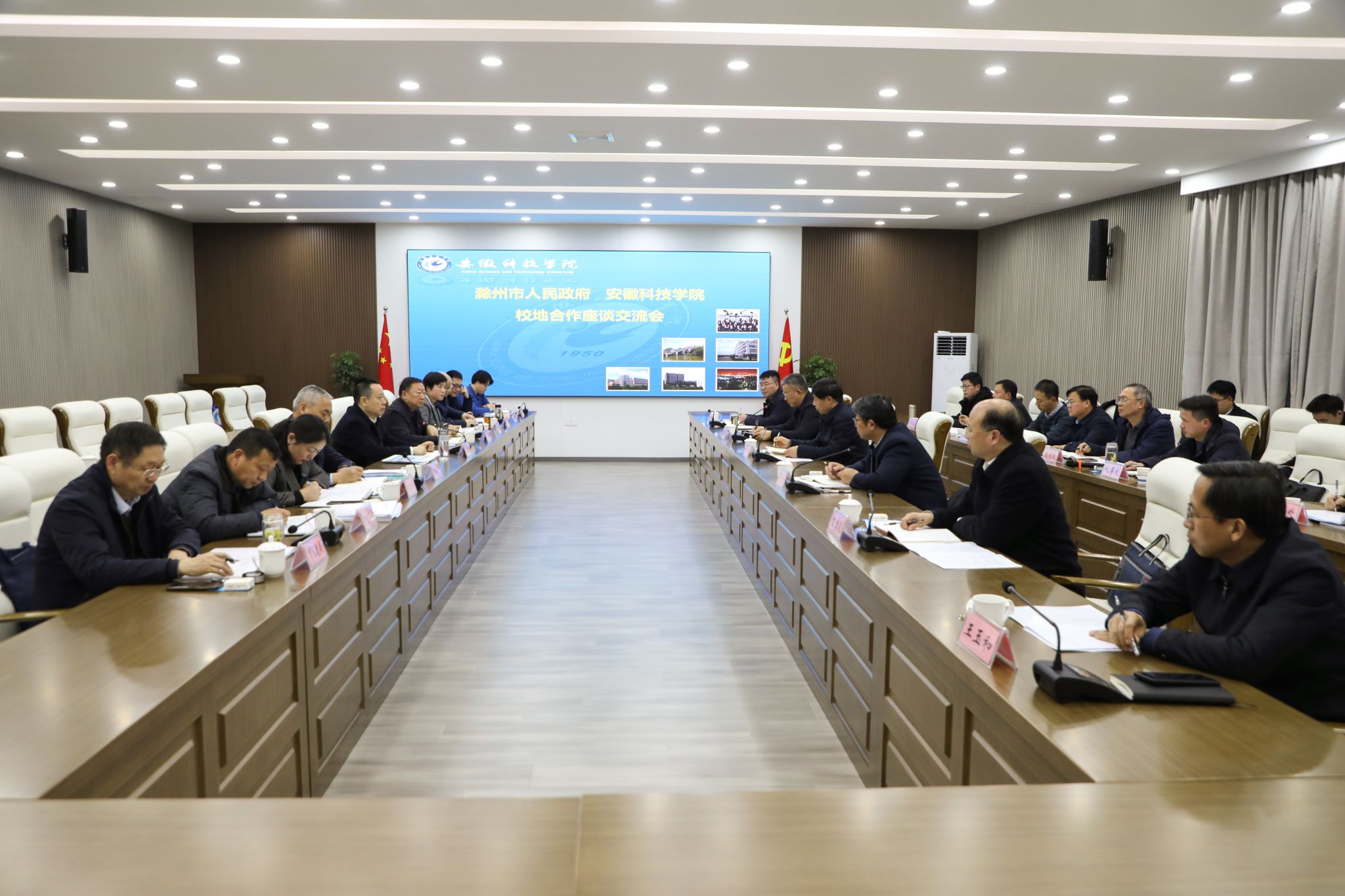 3月3日下午,乐鱼平台_乐鱼(中国)一站式服务平台与滁州市人民政府举行校地合作座谈交流会。滁州市委副书记、市长胡春华,市人大常委会副主任苏虹及市直有关部门、南谯区政府负责人,校党委书记时伟,党委副书记、院长李升和,党委副书记曹付忠,党委委员、副院长王孝义,党委委员、副院长赵伟峰,党委委员、副院长王玉和及相关部门负责同志参加座谈交流会。会议由时伟主持。