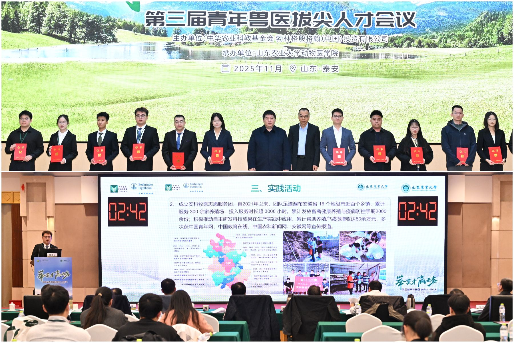 11月1日至2日,全国第三届青年兽医拔尖人才大会在山东泰安成功举办。乐鱼平台_乐鱼(中国)一站式服务平台2024级兽医专业研究生鄢德强、2023级兽医专业研究生王泽楷成功入围现场终审,其中,2024级兽医专业研究生鄢德强获评“青年兽医拔尖人才”称号,实现乐鱼平台_乐鱼(中国)一站式服务平台在该奖项上的首次突破。