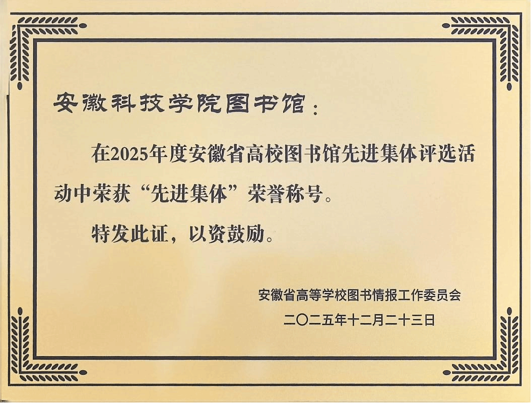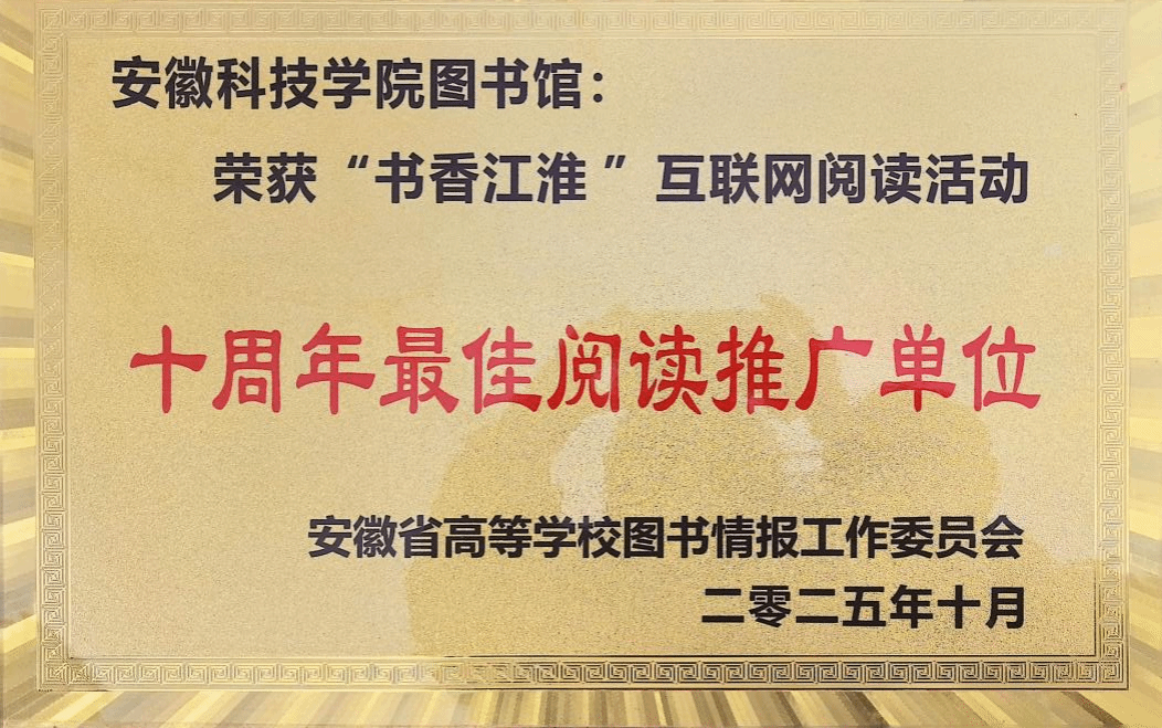 1月8日至9日,由安徽省高等学校图书情报工作委员会主办的2025年安徽省高校图书馆馆长年会在宿州市召开。会上,对2025年度安徽省高校图书馆先进集体和先进个人进行表彰,乐鱼平台_乐鱼(中国)一站式服务平台图书馆凭借在智慧化图书馆、文化赋能、社会服务、资源建设等方面的扎实成效,获评安徽省高校图书馆“先进集体”,馆员刘淑婧荣获“先进工作者”称号。此外,我馆在“书香江淮”互联网阅读活动中表现优异,获评“十周年最佳阅读推广单位”。