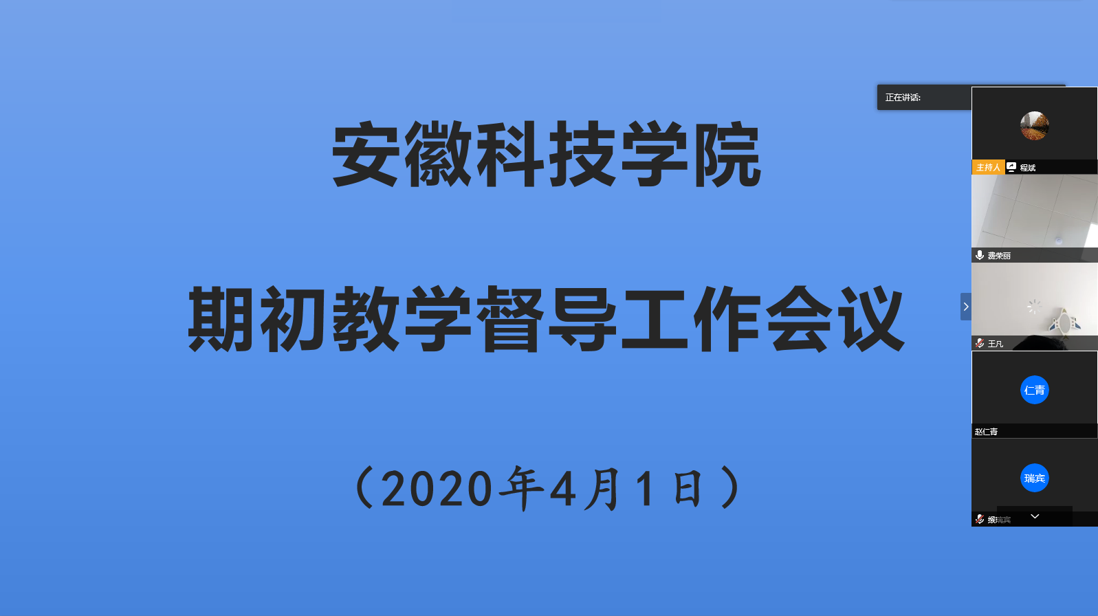 为总结线上教学督导工作经验,增强督导工作实效性,促进教育教学质量提升,4月1日下午,教学督导办公室召开期初教学督导工作视频会议,50多名校院两级教学督导员及教学督导办公室工作人员,利用腾讯会议平台参加会议。会议由教学督导办公室主任程斌主持。
