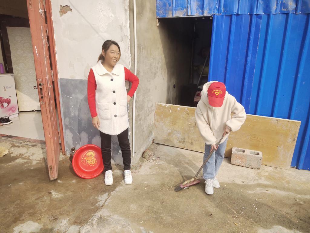 捐赠活动后,志愿者们在左培春的引领下走进当地贫困户的家中,帮助他们整理房间、打扫院落。在打扫工作中,屋内、院前都能看见志愿者的身影,他们分组合作,一部分清理房内垃圾,一部分打扫地面,还有一部分处理堆积的杂物,他们通力合作所展现出的志愿精神得到了当地村民们的肯定和赞许。