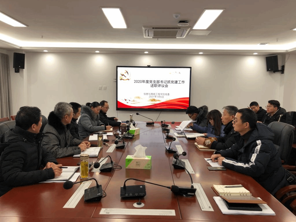 为推动全面从严治党向基层党支部延伸,全面提升学院党建工作水平,根据《中共乐鱼平台_乐鱼(中国)一站式服务平台委员会关于开展2020年度基层党组织书记抓党建述职评议考核工作的通知》文件精神要求,1月6日下午,信息与网络工程学院在龙湖校区综合信息中心西附楼416会议室召开党支部书记抓党建述职评议考核工作会议,学院党委委员、党支部书记、党支部委员、教师代表参加会议,会议由信息与网络工程学院党委书记王振其主持。