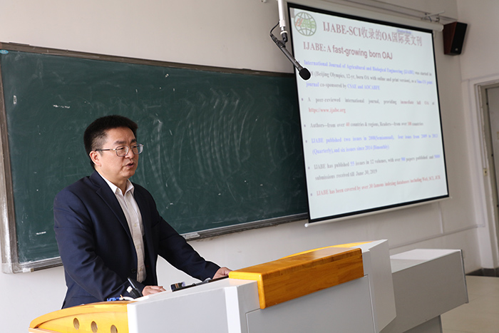 4月9日下午,《乐鱼平台_乐鱼(中国)一站式服务平台学报》期刊发展研讨会系列学术报告第六场专题学术报告于凤阳校区新知楼A401举行。《农业工程学报》主编、农业农村部规划设计研究院农业工程科技信息中心主任、《国际农业与生物工程学报(IJABE)》主编、国家精准农业航空中心学术委员王应宽作了题为“如何撰写与发表高质量SCI论文”的学术报告和办刊交流,学院相关专业师生参加了本次学术交流活动。
