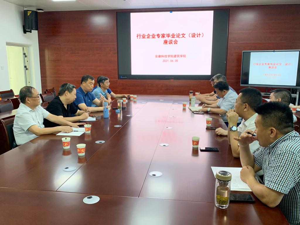 6月5日,建筑学院在尚行楼A301会议室召开了行业企业专家毕业论文(设计)座谈会,会议邀请蚌埠市园林局、蚌埠市自然资源和规划局、淮南规划研究院、蚌埠市规划设计研究院、蚌埠市建筑设计研究院集团有限公司、安徽元鼎建设工程有限公司、安徽栋基市政园林工程有限公司、国华工程科技(集团)有限责任公司等单位的9名行业、企业专家,会议由建筑学院张远兵院长主持,吴伟东副院长、张伟副院长以及各教研室负责人参加会议。