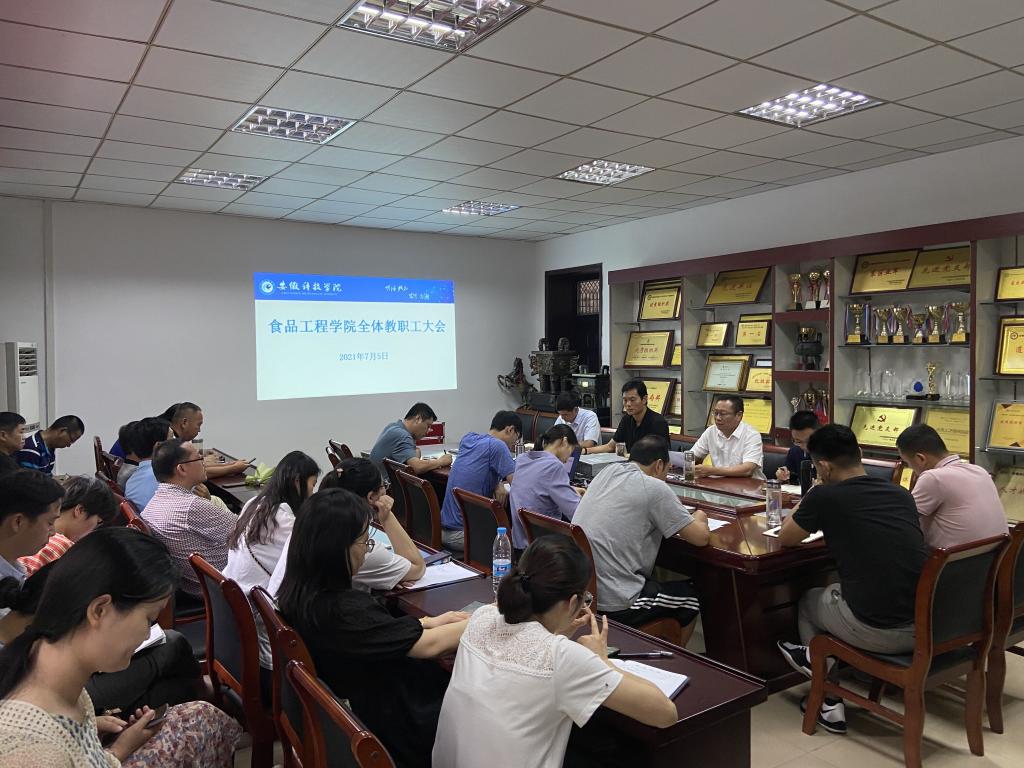 7月5日下午,食品工程学院在学院会议室召开期末教职工大会,会议由学院党委书记付光玺主持,学院党政领导和全体教职工参加会议。