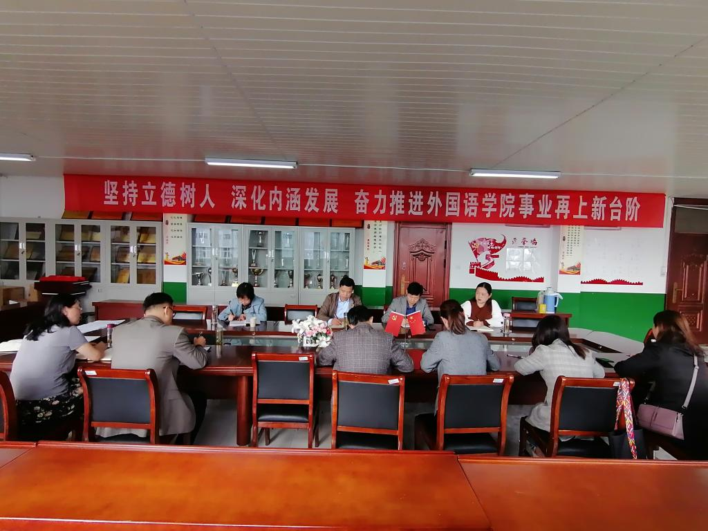 10月11日下午校督导办主任程斌、副主任王培章及校督导员陈娟老师和孙叶荣老师一行来到外国语学院调研教学督导及目标考核管理工作。外国语学院院长陈德用、副院长刘萍、外国语学院督导组全体教师和部分辅导员参加了座谈,刘萍主持调研座谈会。