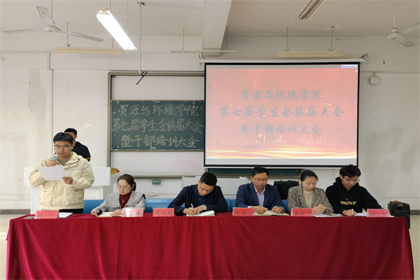 会上,沈树周首先表示对第六届学生会所取得的成绩给予充分的肯定和表扬,接着,他对第七届学生会提出建议和期望,他指出学生会应在思想教育方面进行改革,加强学生干部的思想建设,他要求学生会成员要找准自身位置,要有使命感和责任感。同时,他指出身为学生干部在各项工作和生活中要有组织引导作用,并且提出要进行三个“意识”—政治意识、责任意识、服务意识的建设。沈树周希望学生会成员力争做“有格局”“有思想”“有能力”的高素质学生干部,他在演讲的最后强调了资环学生会成员“聚是一团火,散是满天星”,并明确指出学生会成员要懂得团结友爱、互帮互助、工作实事求是、态度端正的重要性。杨小晗对第六届学生会所开展的活动表示了赞扬与肯定,随后,对第七届学生会全体成员提出了相关要求并对各个部门的规划提出了建议,她明确指出学生会成员需要明确自身职责并自觉遵守学生会的规章制度。