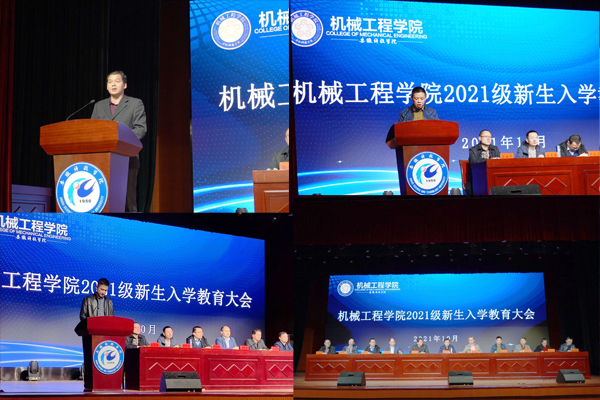 会上,张程宣讲解读了《机械工程学院关于开展2021级新生入学教育的安排意见》,并就重点就加强学院学风建设、维护课堂良好秩序、杜绝违规使用手机等问题,向全体新生提出了具体要求;张华就学院发展历程、学科建设、专业认证、特色专业、重点专业、办学师资、教学成果等方面向学生作了详细介绍。教师代表——汽车工程系副主任、教工党支部书记张卫博士,老生代表——学生会主席团成员、国家奖学金获得者、中共预备党员、车辆工程191班李申昊,新生代表——农业智能装备工程211班程藜在会上先后发言。