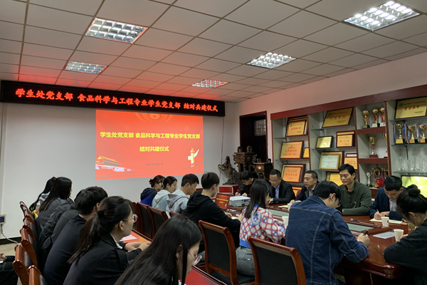 为进一步提高基层党建工作水平,增强基层党支部活力, 10月27日下午,学生处党支部与食品科学与工程专业学生党支部举办结对共建活动,学生处党支部书记、处长何永勇,食品工程学院党委书记付光玺出席,双方全体党员参加。活动由学生处党支部副书记、副处长胡文靖主持。