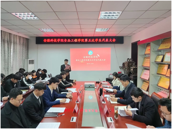 为加强食品工程学院学生会建设,完善我院学生会组织管理,11月22日下午,食品工程学院在学院会议室隆重召开第五次学生代表大会。学院党委书记付光玺、党委副书记王广良、党政办主任赵传磊、专职辅导员吴玘、杨勇出席本次会议,学院第四届学生会主席团成员、第五次学生代表大会的学生代表及各学生团体成员与会。本次大会由学院学生会主席团成员宋继博主持。