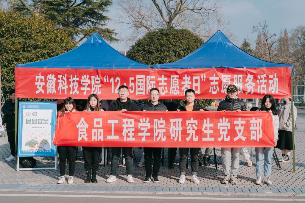 食品工程学院研究生党支部在凤阳校区开展了“食品安全”宣讲志愿服务活动,通过现场签名、现场讲解、散发食品安全手册等方式,以“食品安全+生活小常识”为主题,向来往师生科普了食品安全常识、食品污染来源、食品安全标识等方面知识。针对师生较为关注的食品安全方面问题,介绍了食醋质量鉴别、食物中毒简介、防腐剂使用等生活中的食品安全技巧。过往师生纷纷表示通过活动不仅学到了食品安全方面的知识,更重要了解了“12 5日国际志愿者”,承诺后期将主动践行志愿服务精神,开展多种形式的志愿服务活动,努力形成关心、支持和参与志愿服务的良好氛围,营造志愿服务人人愿为、时时能为、处处可为的生动局面。