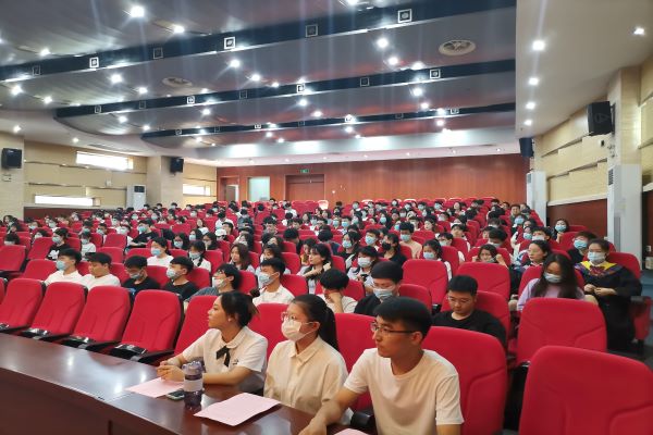 詹学文首先对同学们四年来的成长与进步,成熟与稳重点赞。同时,也为同学们四年来为学院乃至学校建设与发展所作出的贡献表示衷心的感谢。希望同学们做好人生规划,遵守校纪校规、安全有序的离校,对此他提出以下八点要求:一是高度重视离校工作。做好常态化疫情防控,时刻提高警惕,在确保自身和他人安全基础上,妥善安排好毕业前的各项工作;二是积极把握就业机会。抓住机遇,迎接挑战,积极就业,希望学生党员以及学生干部起带头作用;三是不断增强法治意识。严格遵守法律法规、校规校纪,做到谨言慎行;四是常怀感恩报德之心。同学们要满怀感恩的心面对一切,感谢成长路上给予帮助的人,使大家变得更加坚强;五是发挥模范带头作用。学生干部和学生党员必须要挺身而出,主动作为,发挥先锋模范作用,以实际行动带动身边的每位同学,履职尽责、知责担责;六是学会竞争团结创新。在日常工作中要具备竞争意识,树立团队意识,学会合作共嬴;七是适应顺境逆境生存。在人生的道路上会遇到各种挫折和坎坷,要以积极乐观的心态去面对问题;八是创造人生新的辉煌。要胸怀大志,脚踏实地,坚定理想信念,认认真真做好每一件事,做一个有理想有作为有担当的当代好青年,撸起袖子加油干,用自己的聪明才智和火热青春在新的征程中打造出属于自己的新辉煌。最后,詹学文用《年轻的朋友来相会》里面歌词向同学们发出真诚邀请,希望大家有时间常回来看看,母校永远是大家坚强的后盾。