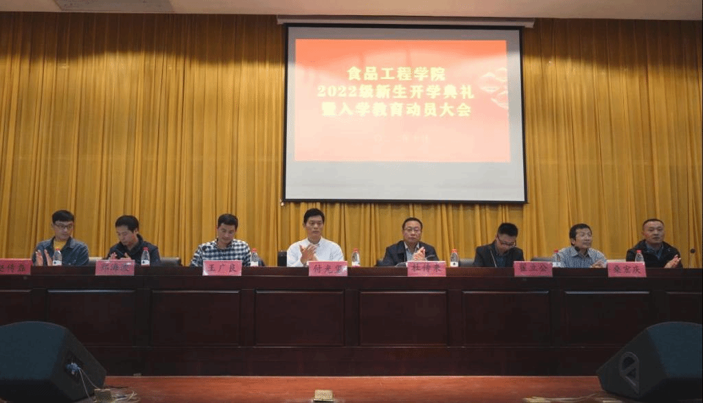 翟立公向同学们详细介绍了学科建设情况,郑海波介绍了专业设置情况,提高了大家对所学学科专业的进一步认识。桑宏庆作为教师代表发言,勉励同学们在新征程上不断努力奋斗。老生代表、院学生会主席团负责人薛紫琪以及新生代表滕妍相继发言。会上,赵传磊宣读了《食品工程学院2022级新生入学教育方案》。大会还邀请了2000届食品营养与教育专业毕业生、南京农业大学食品科学技术学院院长、博士生导师、国家肉品质量安全控制工程技术研究中心常务副主任李春保教授为代表的一批优秀校友,如昝星萍、吴韬、陈珣、高洁、周卫冕、罗怡、张英明等以微视频的方式寄语广大新生。
